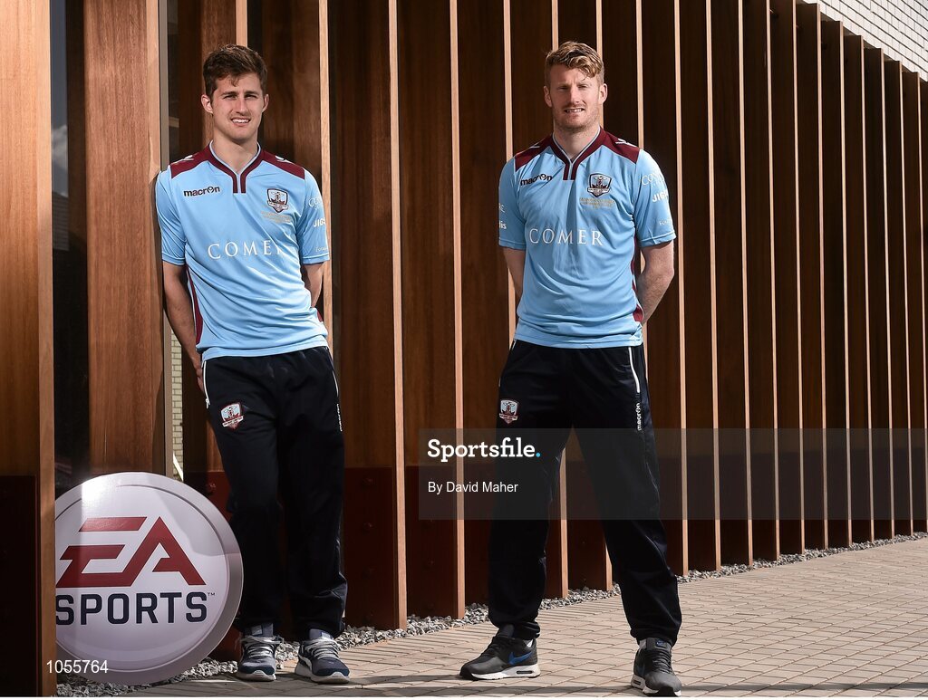 15 September 2015; Jake Keegan, left and Paul Sinnott, Galway United, during the EA Sports Cup Final Media Day. FAI National Training Centre, Abbotstown, Co. Dublin. Picture credit: David Maher / SPORTSFILE