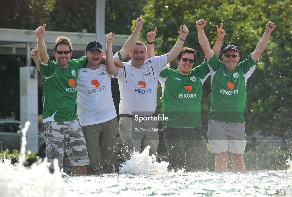 9 September 2008; Republic of Ireland fans, from left, Kieran Feighoney, Philip Brennan, John Dowling, Adam Feighoney and Aidan Mullen in Podgorica, Montenegro, ahead of the Republic of Ireland's 2010 World Cup Qualifier against Montenegro on Wednesday. Picture credit; David Maher / SPORTSFILE