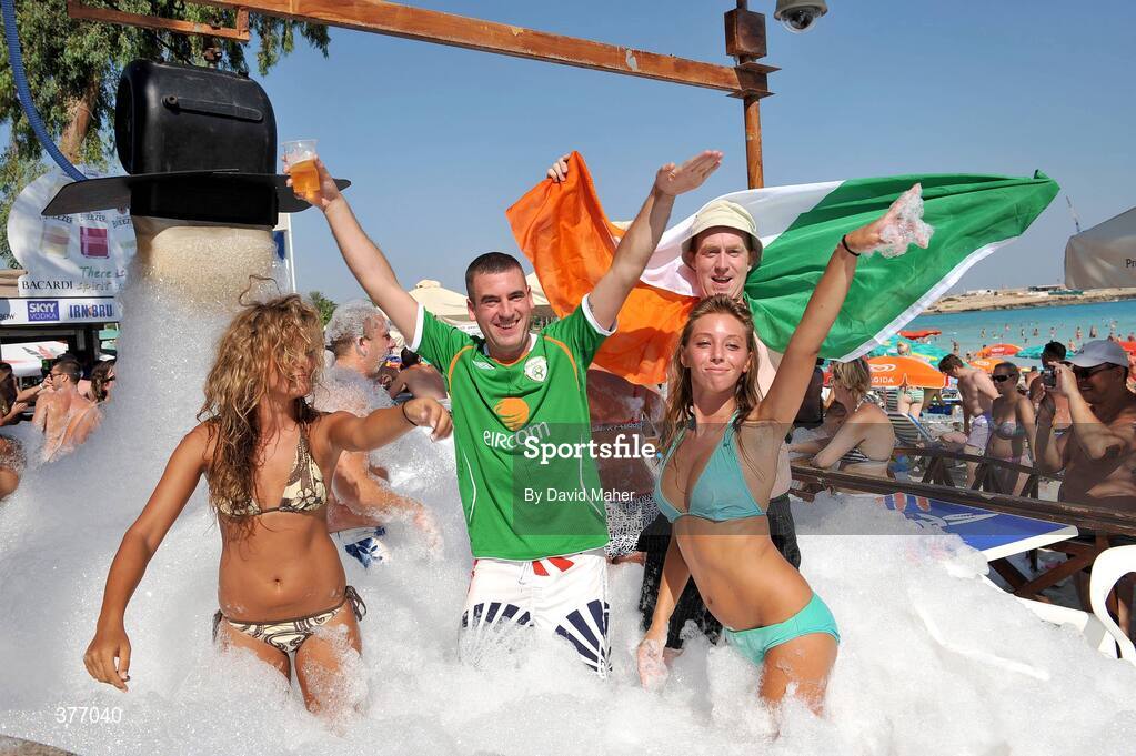 4 September 2009; Republic of Ireland fans Stephen Cusack, left, and Dan Doonan, both from Killarney, Co. Kerry, with Lena and Renata, both from Nicosia, Cyprus, in Ayia Napa ahead of their 2010 FIFA World Cup Qualifier against Cyprus on Saturday. Ayia Napa, Cyprus. Picture credit: David Maher / SPORTSFILE