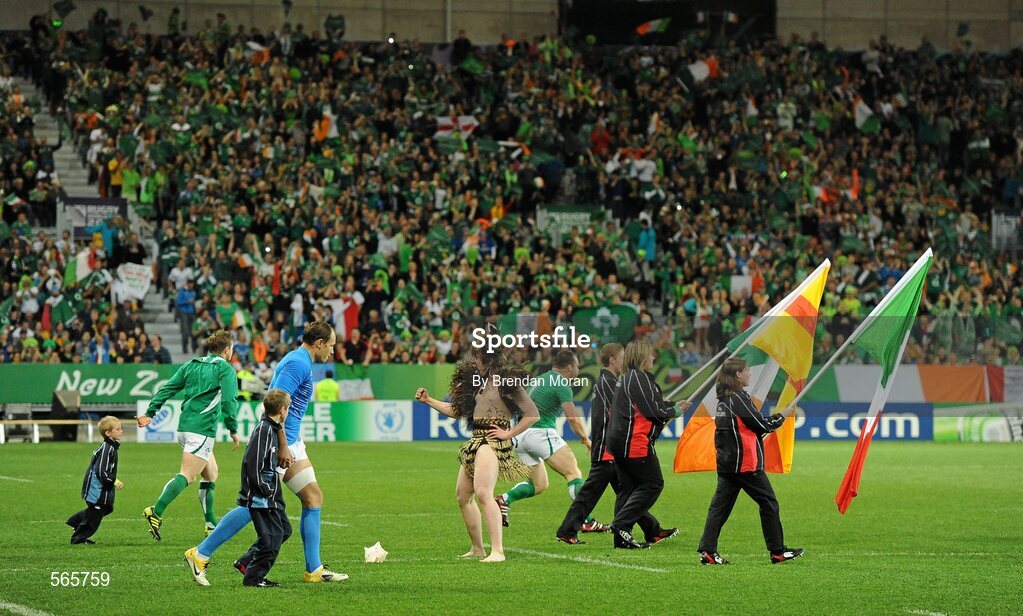2 October 2011; A Maori Warrior performs as the teams make their way onto the pitch before the game. 2011 Rugby World Cup, Pool C, Ireland v Italy, Otago Stadium, Dunedin, New Zealand. Picture credit: Brendan Moran / SPORTSFILE
