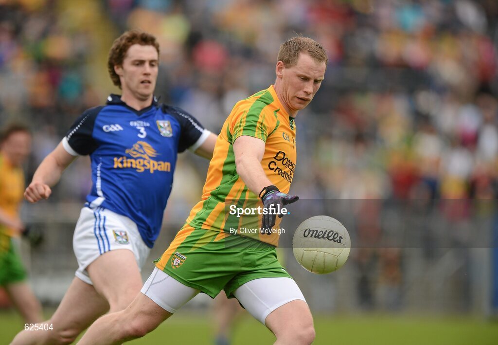 20 May 2012; Anthony Thompson, Donegal, in action against Damien Reilly, Cavan. Ulster GAA Football Senior Championship Preliminary Round, Cavan v Donegal, Kingspan Breffni Park, Cavan. Picture credit: Oliver McVeigh / SPORTSFILE