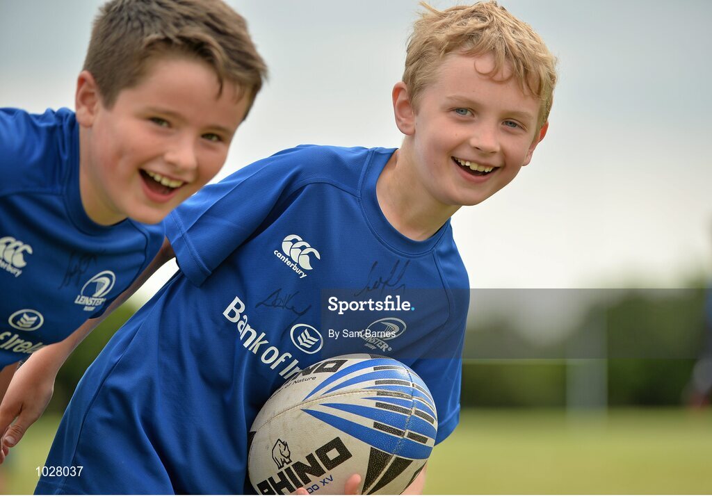 16 July 2015; Luke Fitzgerald and Dave Kearney of Leinster Rugby came out to the Bank of Ireland Summer Camp to meet up with some local young rugby talent in Greystones RFC. Pictured is Sam Lyons and Aaron Harper. Greystones RFC, Greystones, Co. Wicklow. Picture credit: Sam Barnes / SPORTSFILE
