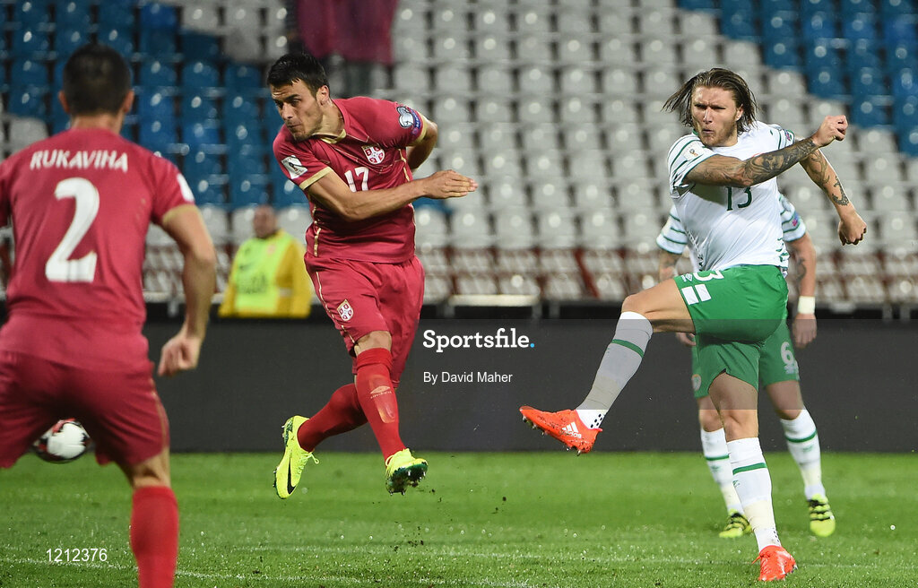 5 September 2016; Jeff Hendrick of Republic of Ireland scores his sides first goal during the FIFA World Cup Qualifier match between Serbia and Republic of Ireland at the Red Star Stadium in Belgrade, Serbia. Photo by David Maher/Sportsfile