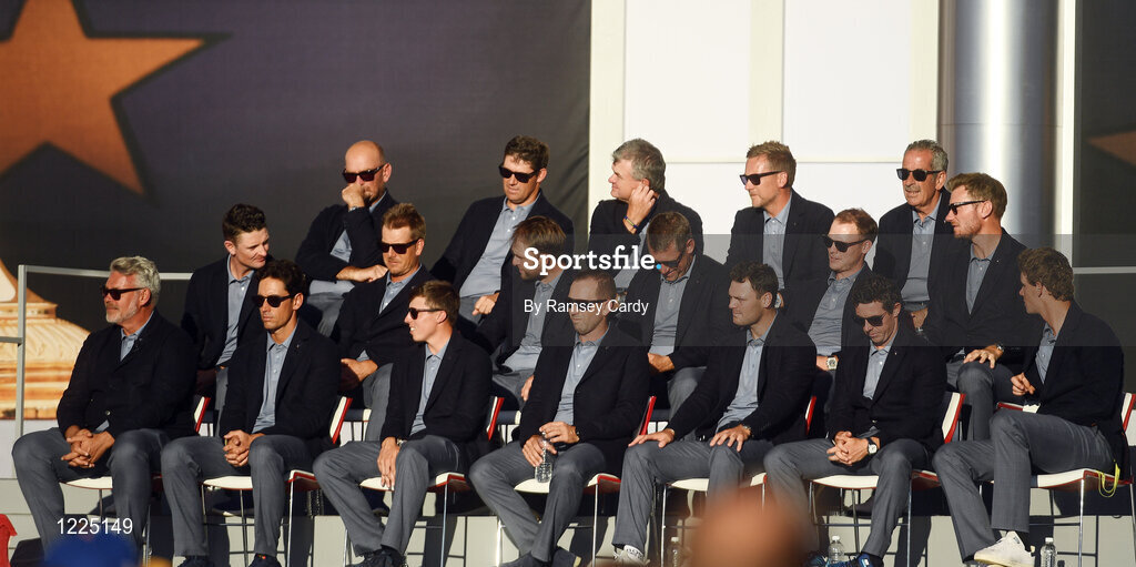 2 October 2016; The European team at the Closing Ceremony of The 2016 Ryder Cup Matches at the Hazeltine National Golf Club in Chaska, Minnesota, USA. Photo by Ramsey Cardy/Sportsfile