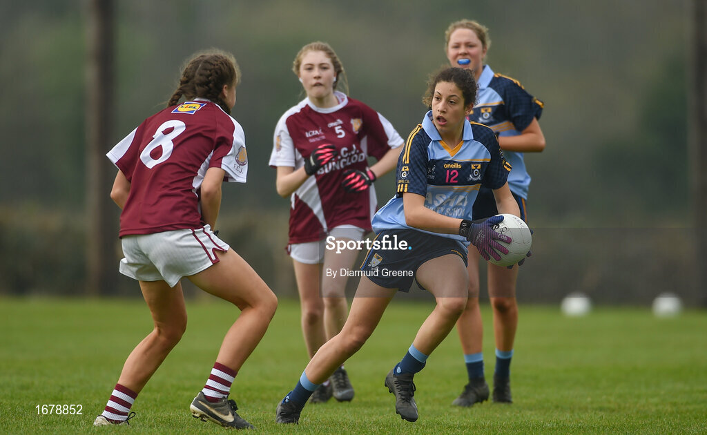 6 April 2019; Alessia Mazzola of Cashel Community School in action against Katie Breen-Sherlock of FCJ Bunclody during the Lidl All Ireland Post Primary School Junior C Final match between Cashel Community School and FCJ Bunclody at St Molleran’s in Carrickbeg, Co. Waterford. Photo by Diarmuid Greene/Sportsfile