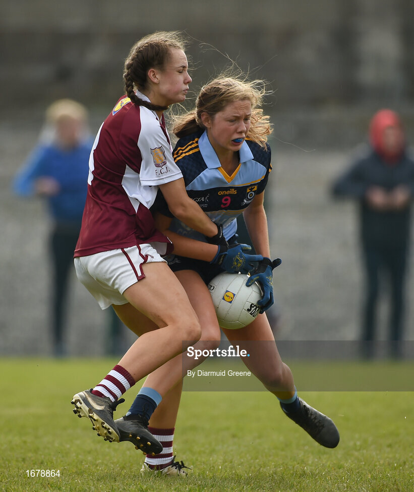 6 April 2019; Emer McCarthy of Cashel Community School in action against Katie Breen-Sherlock of FCJ Bunclody during the Lidl All Ireland Post Primary School Junior C Final match between Cashel Community School and FCJ Bunclody at St Molleran’s in Carrickbeg, Co. Waterford. Photo by Diarmuid Greene/Sportsfile