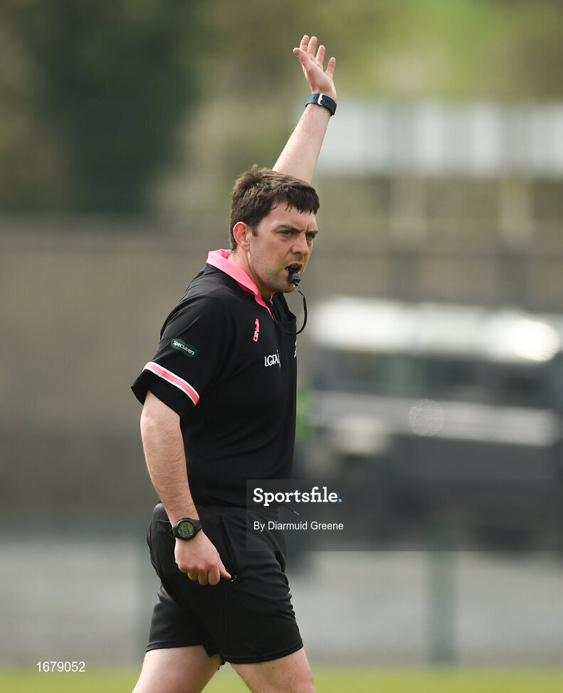 6 April 2019; Referee Eamonn Moran during the Lidl All Ireland Post Primary School Junior C Final match between Cashel Community School and FCJ Bunclody at St Molleran’s in Carrickbeg, Co. Waterford. Photo by Diarmuid Greene/Sportsfile