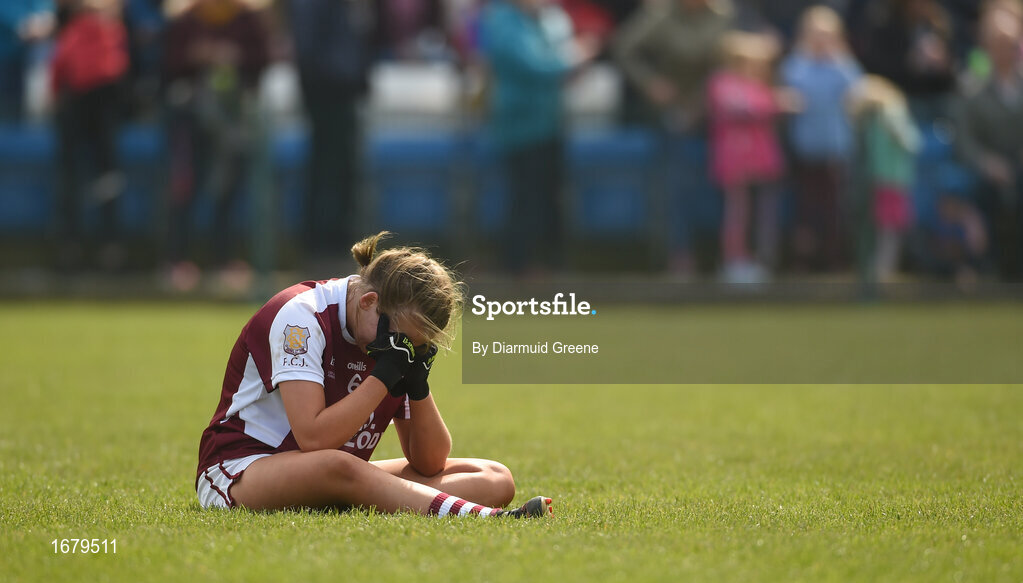 6 April 2019; Shauna Nolan of FCJ Bunclody reacts after the Lidl All Ireland Post Primary School Junior C Final match between Cashel Community School and FCJ Bunclody at St Molleran’s in Carrickbeg, Co. Waterford. Photo by Diarmuid Greene/Sportsfile