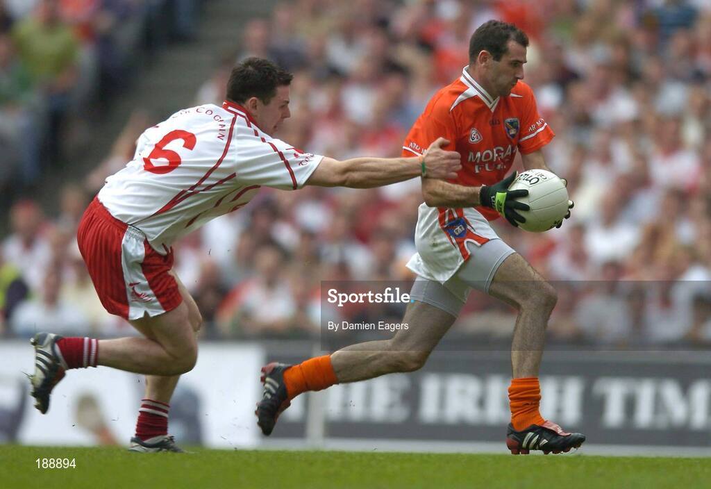 4 September 2005; Steven McDonnell, Armagh, on the way to scoring his goal despite the efforts of Conor Gormley, Tyrone. Bank of Ireland All-Ireland Senior Football Championship Semi-Final, Armagh v Tyrone, Croke Park, Dublin. Picture credit; Damien Eagers / SPORTSFILE