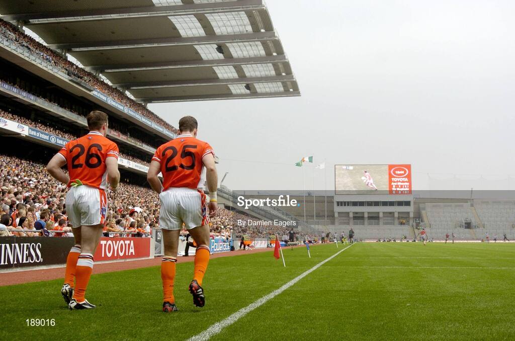 4 September 2005; Armagh players Justin McNulty, no. 26, and Enda McNulty warm up along the touch line. Bank of Ireland All-Ireland Senior Football Championship Semi-Final, Armagh v Tyrone, Croke Park, Dublin. Picture credit; Damien Eagers / SPORTSFILE