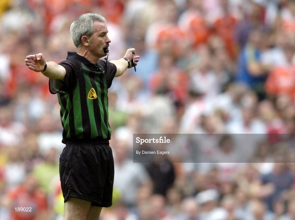 4 September 2005; Referee Paddy Russell signals for a penalty to Tyrone. Bank of Ireland All-Ireland Senior Football Championship Semi-Final, Armagh v Tyrone, Croke Park, Dublin. Picture credit; Damien Eagers / SPORTSFILE