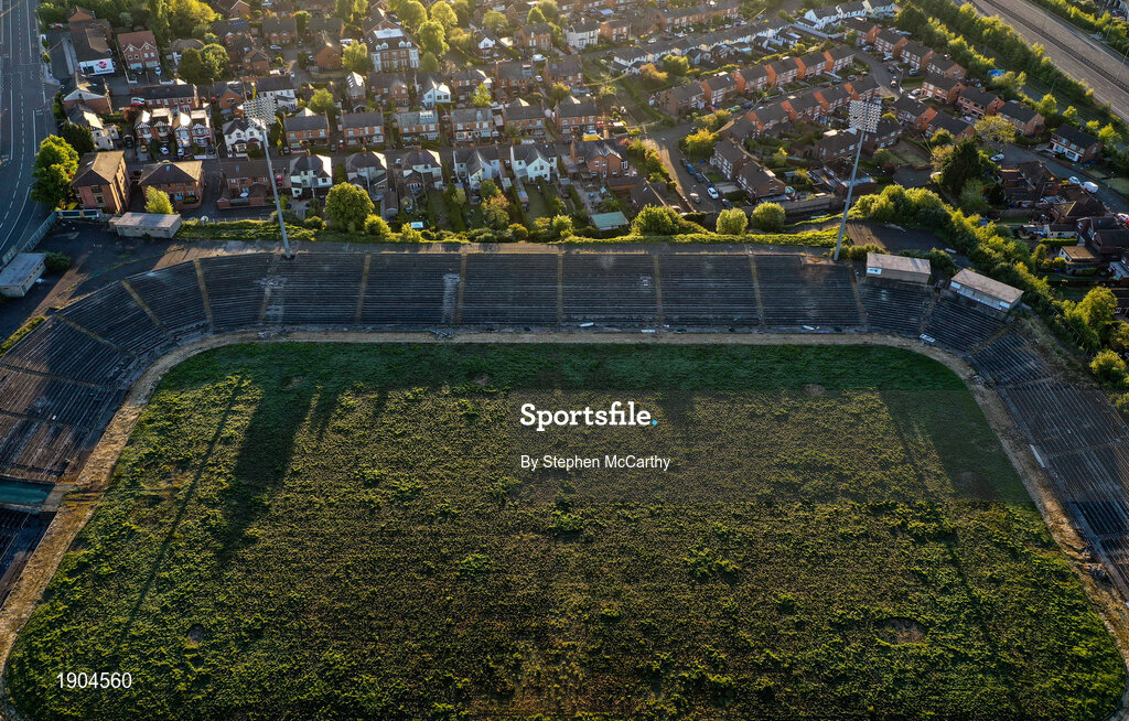 11 June 2020; A general view of Casement Park in Belfast, Northern Ireland. Located on Andersonstown Road in the west of the city, Casement Park serves as the home ground of the Antrim football and hurling teams. The stadium is currently closed and in a state of dereliction, with redevelopment plans pending now for several years. Photo by Stephen McCarthy/Sportsfile