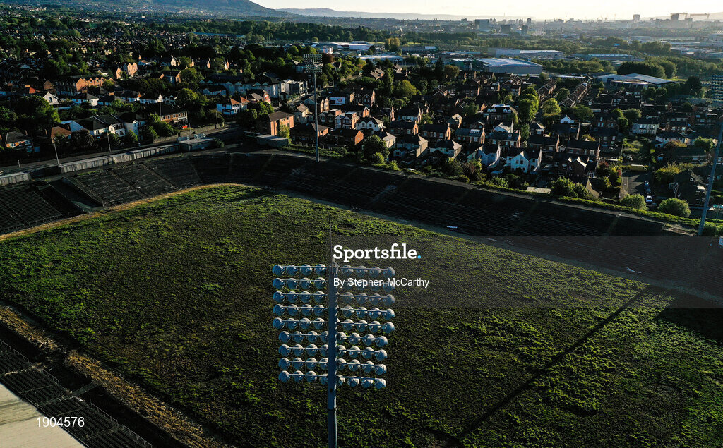 11 June 2020; A general view of Casement Park in Belfast, Northern Ireland. Located on Andersonstown Road in the west of the city, Casement Park serves as the home ground of the Antrim football and hurling teams. The stadium is currently closed and in a state of dereliction, with redevelopment plans pending now for several years. Photo by Stephen McCarthy/Sportsfile