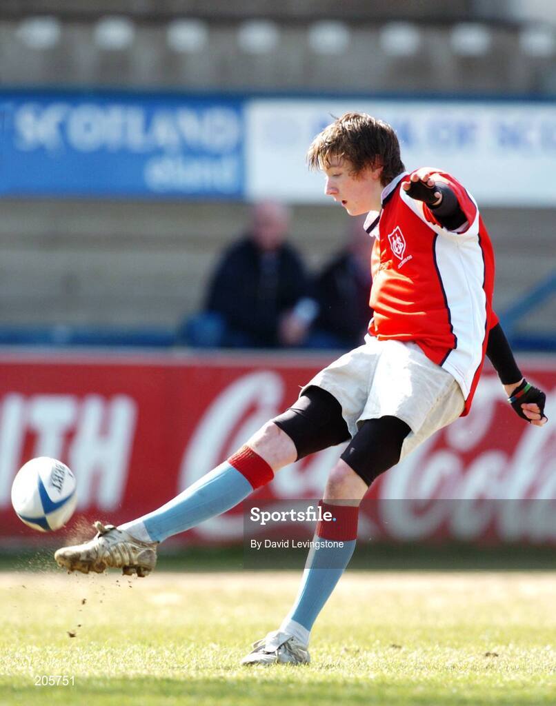 5 April 2006; Enda Hession, Catholic University, kicks a penality. Fr. Godfrey Cup Final, Donnybrook, Dublin. Picture credit: David Levingstone / SPORTSFILE