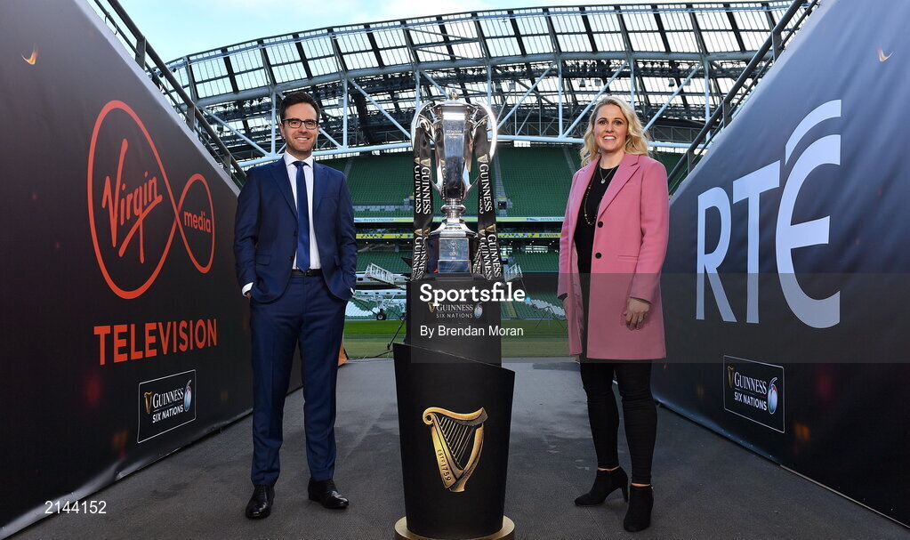 19 January 2022; RTÉ and Virgin Media Television today announced details of its historic partnership to bring all of the 2022 Six Nations Rugby action, free-to-air for Irish sports fans. Starting on Friday 4 February with Ireland U-20's taking on France, coverage includes all matches from Ireland Men's, Women's and U-20s tournaments. In attendance at the announcement are presenters Joe Molloy of Virgin Media Television and Jacqui Hurley of RTÉ. Photo by Brendan Moran/Sportsfile