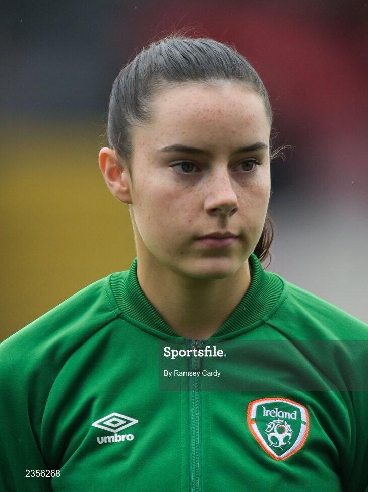 21 October 2022; Aoife Kelly of Republic of Ireland before the 2022/23 UEFA Women's U17 European Championship Qualifiers Round 1 match between Republic of Ireland and Austria at Seaview in Belfast. Photo by Ramsey Cardy/Sportsfile