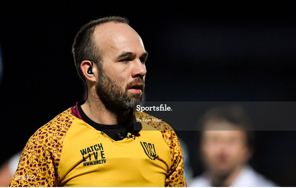 18 February 2023; Referee Mike Adamson during the United Rugby Championship match between Leinster and Dragons at RDS Arena in Dublin. Photo by Tyler Miller/Sportsfile