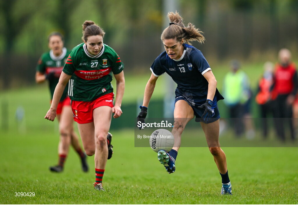 29 March 2025; Katie Murray of Waterford in action against Ciara Whyte of Mayo during the Lidl Ladies National Football League Division 1 match between Waterford and Mayo at Kilmacthomas GAA Club in Kilmacthomas, Waterford. Photo by Brendan Moran/Sportsfile
