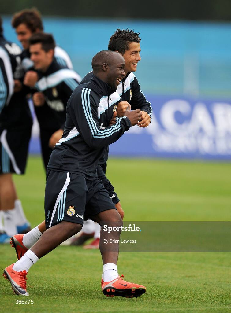15 July 2009; Real Madrid's Cristiano Ronaldo with team-mate Lassana Diarra during squad training. Real Madrid pre-season squad training, Carton House, Maynooth, Co. Kildare. Picture credit: Brian Lawless / SPORTSFILE