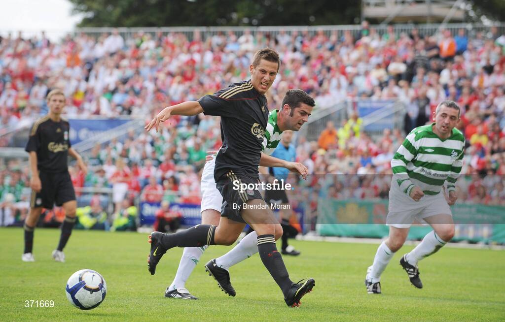 6 August 2009; Krisztian Nemeth, Liverpool FC XI, in action against Tommy Barrett, Dunmanway Town AFC. Pre-Season Friendly, Dunmanway Town AFC v Liverpool FC XI, Maria Immaculata Community College, Dunmanway, Co. Cork. Picture credit: Brendan Moran / SPORTSFILE