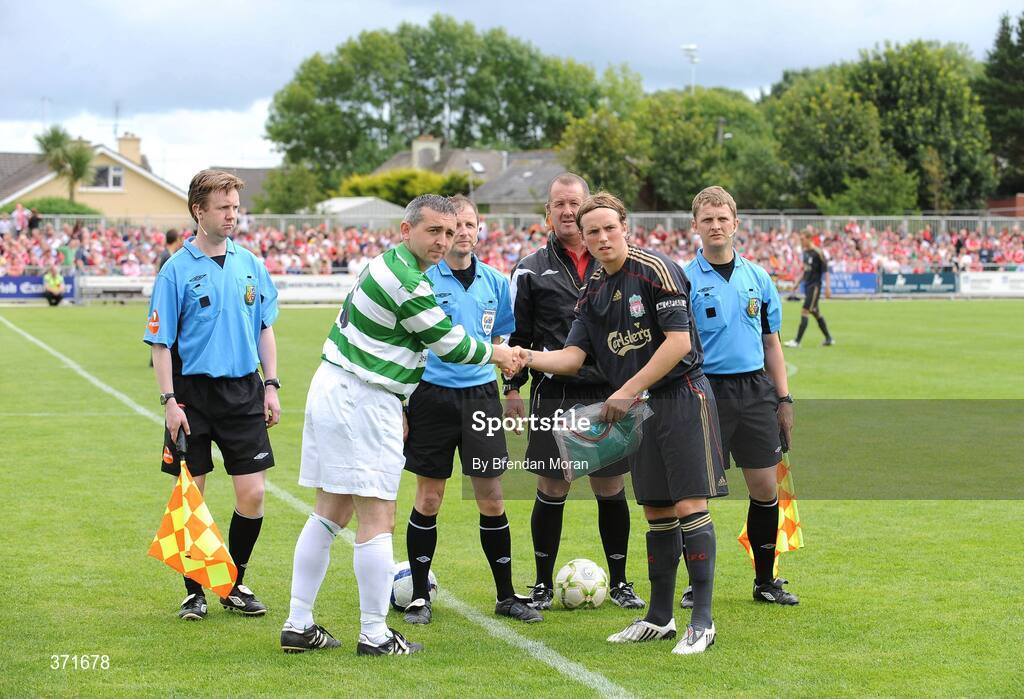 6 August 2009; Team captains David Hall, left, Dunmanway Town AFC, and Steven Irwin, Liverpool, shake hands before the game. Pre-Season Friendly, Dunmanway Town AFC v Liverpool FC XI, Maria Immaculata Community College, Dunmanway, Co. Cork. Picture credit: Brendan Moran / SPORTSFILE