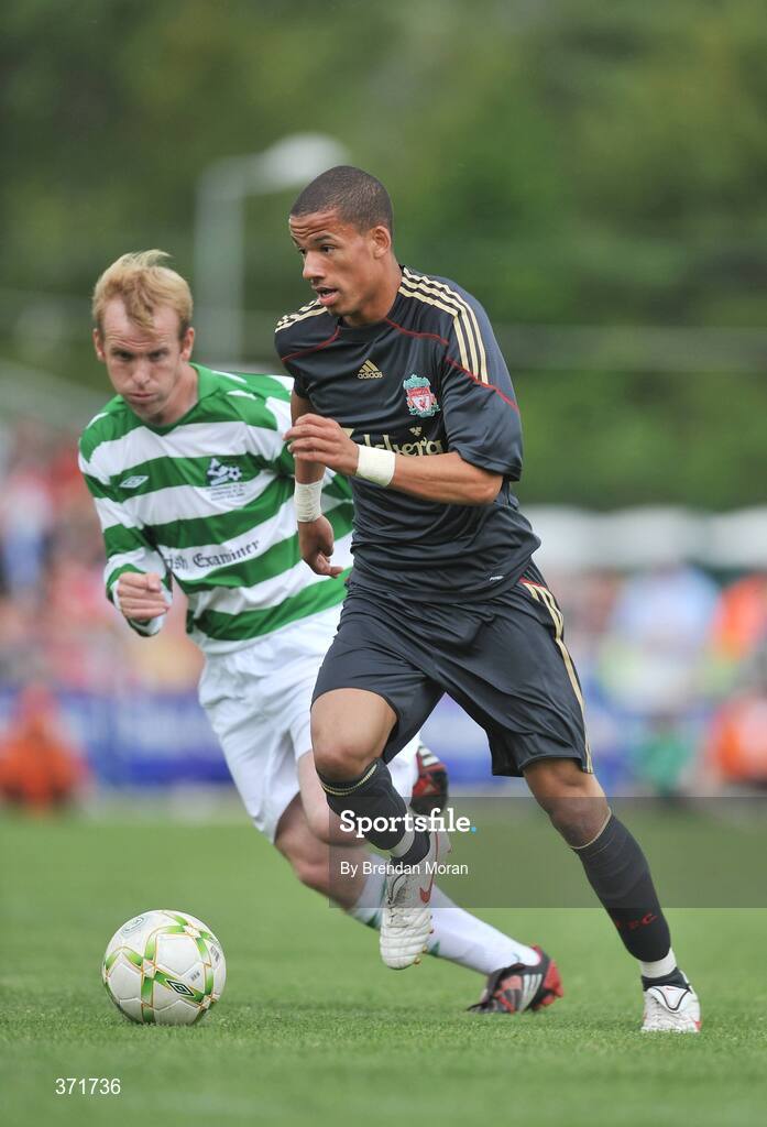 6 August 2009; Nathan Eccleston, Liverpool, in action against Michael Mulconroy, Dunmanway Town AFC. Pre-Season Friendly, Dunmanway Town AFC v Liverpool FC XI, Maria Immaculata Community College, Dunmanway, Co. Cork. Picture credit: Brendan Moran / SPORTSFILE