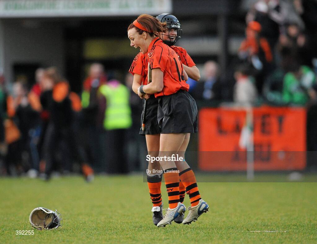 13 December 2009; Mary O'Kane, right, and Ceara Cushnahan, Lavey, celebrate at the final whistle. All-Ireland Junior Camogie Club Championship Final Replay, Lavey, Derry, v St. Anne's Dunhill, Waterford, Donaghmore, Ashbourne, Co. Meath. Picture credit: Brian Lawless / SPORTSFILE *** Local Caption ***