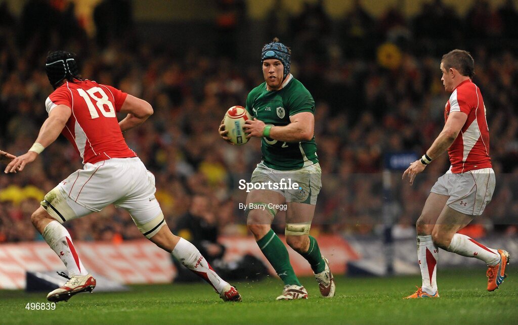 12 March 2011; Sean O'Brien, Ireland, in action against Jonathan Thomas, left, and Shane Williams, Wales. RBS Six Nations Rugby Championship, Wales v Ireland, Millennium Stadium, Cardiff, Wales. Picture credit: Barry Cregg / SPORTSFILE
