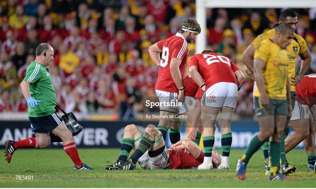 22 June 2013; Paul O'Connell, British & Irish Lions, reacts to an injury during the second half. British & Irish Lions Tour 2013, 1st Test, Australia v British & Irish Lions, Suncorp Stadium, Brisbane, Queensland, Australia. Picture credit: Stephen McCarthy / SPORTSFILE