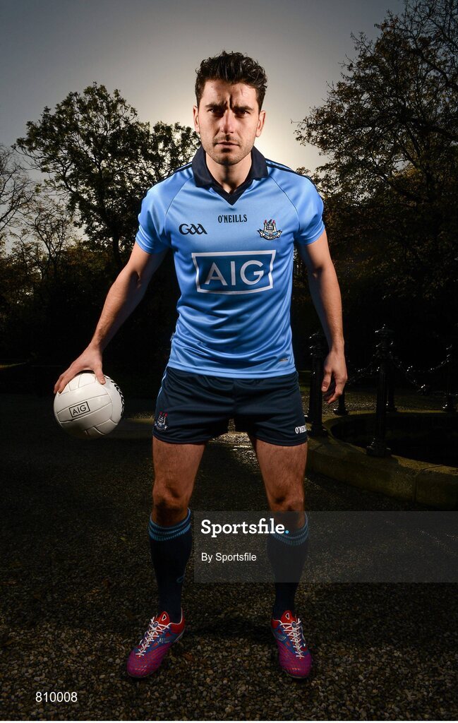 12 November 2013; Pictured wearing the new Dublin jersey featuring the logo of Dublin GAA sponsor, AIG Insurance, is Dublin footballer Bernard Brogan. The full kit is now in production and will be available for purchase in retail outlets nationwide from the 15th of November. The new partnership between Dublin GAA and AIG Ireland sees AIG exclusively sponsoring the county’s hurling, football, ladies football and camogie teams at all levels. This is the first time in Dublin GAA history that all codes have been united under one sponsor. Dublin GAA and AIG Sponsorship and New Jersey Launch, Iveagh Gardens, Dublin. Photo by Sportsfile