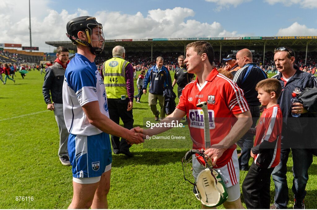 8 June 2014; Pauric Mahony, Waterford, and Daniel Kearney, Cork, exchange a handshake after the game. Munster GAA Hurling Senior Championship, Quarter-Final Replay, Cork v Waterford, Semple Stadium, Thurles, Co. Tipperary. Picture credit: Diarmuid Greene / SPORTSFILE