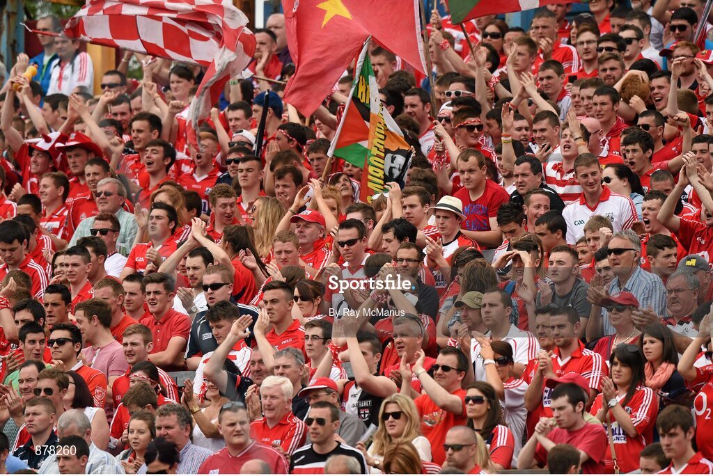 15 June 2014; Cork supporters on the town end terrace before the game. Munster GAA Hurling Senior Championship, Semi-Final, Clare v Cork, Semple Stadium, Thurles, Co. Tipperary. Picture credit: Ray McManus / SPORTSFILE