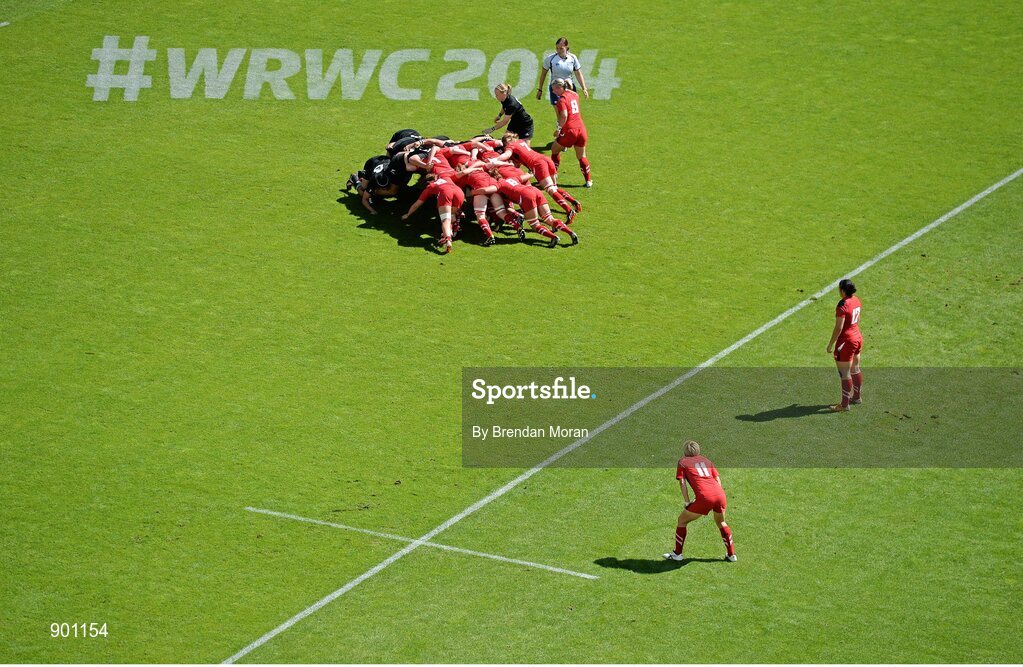 13 August 2014; A general view of a scrum during the match between New Zealand and Wales. 2014 Women's Rugby World Cup 5th Place Semi-Final, New Zealand v Wales, Stade Jean Bouin, Paris, France. Picture credit: Brendan Moran / SPORTSFILE