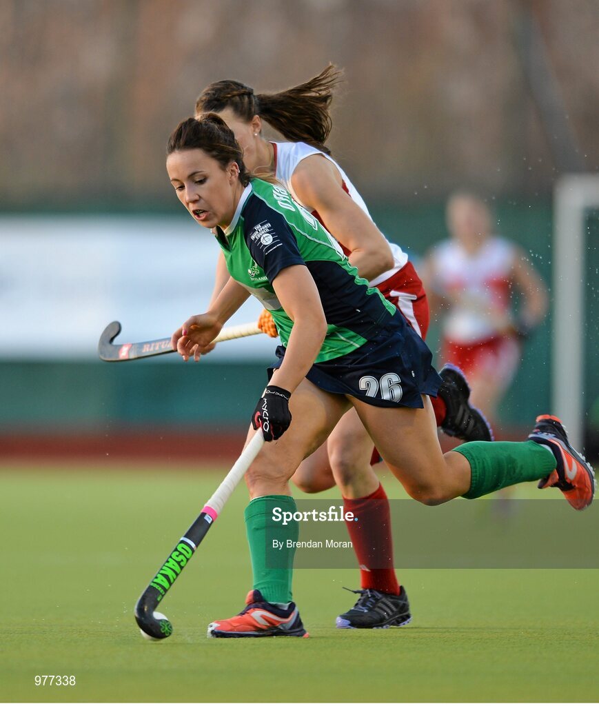 22 March 2015; Anna O'Flanagan, Ireland, in action against Kate Gillis, Canada. Ireland v Canada - World Hockey League 2 Final, National Hockey Stadium, UCD, Belfield, Dublin. Picture credit: Brendan Moran / SPORTSFILE