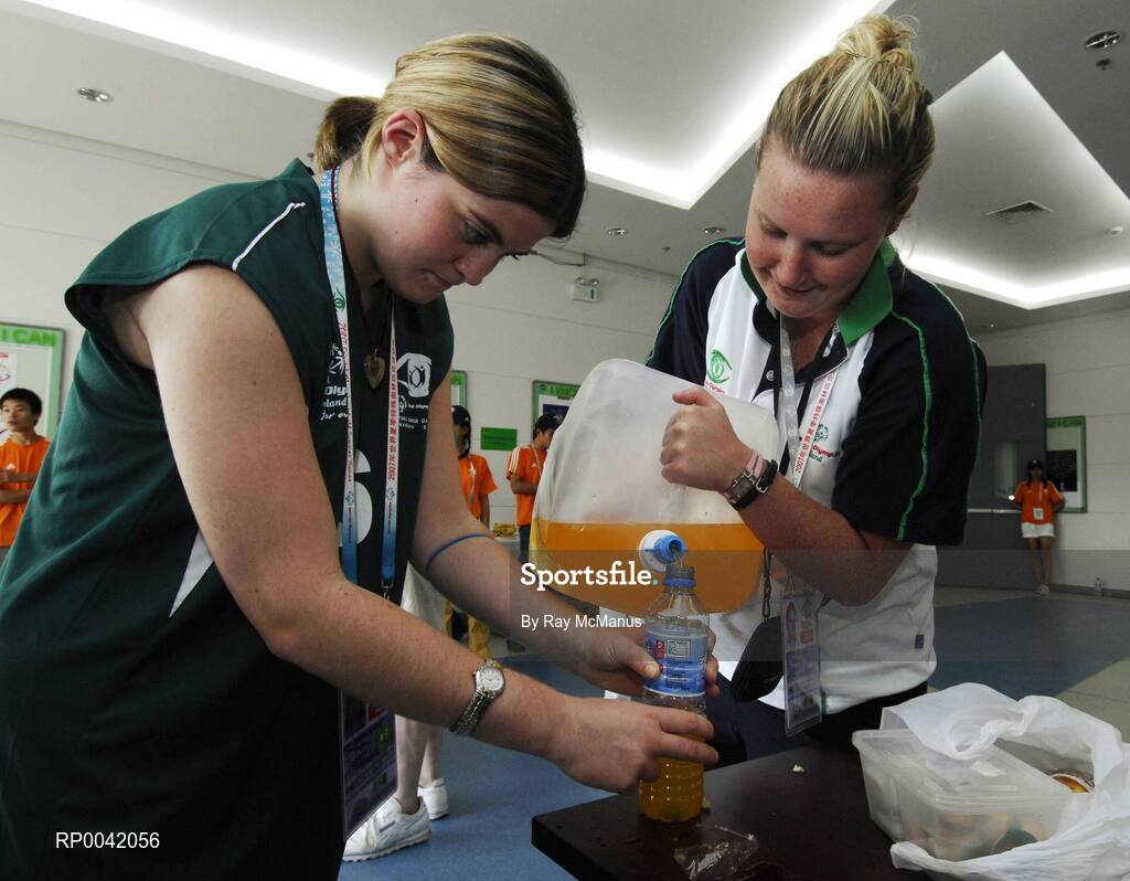 3 October 2007; Aisling O'Brien, Sandycove, Dublin, left, with coach Louise O'Toole, during a break in divisioning in advance of the Basketball finals. 2007 Special Olympics World Summer Games, Shanghai Jiaotong University Gymnasium, Shanghai, China. Picture credit: Ray McManus / SPORTSFILE