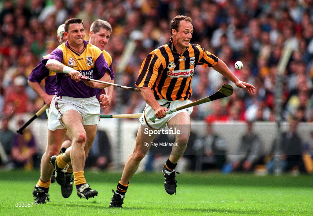 13 July 1997; Andy Comerford of Kilkenny in action against Larry O'Gorman of Wexford during the GAA Leinster Senior Hurling Championship Final match between Wexford and Kilkenny at Croke Park in Dublin. Photo by Ray McManus/Sportsfile