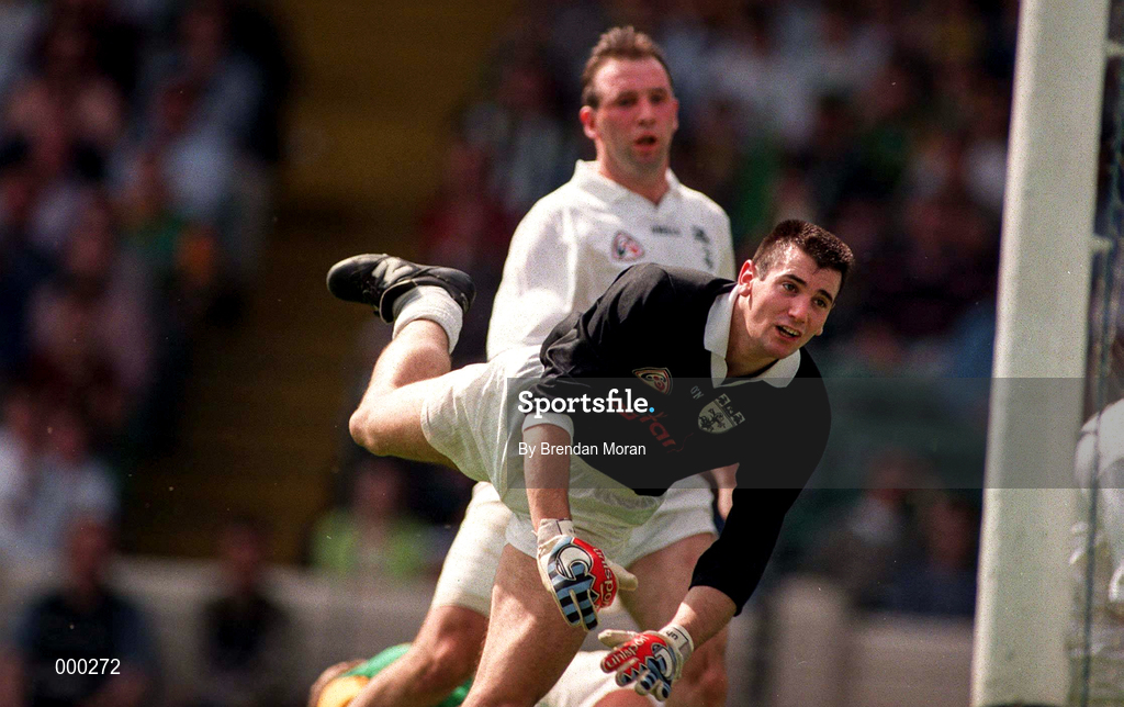 6 July 1997; Kildare goalkeeper Christy Byrne and team-mate Glenn Ryan, behind, look on during the Leinster GAA Senior Football Championship Semi-Final match between Kildare and Meath at Croke Park in Dublin. Photo by Brendan Moran/Sportsfile