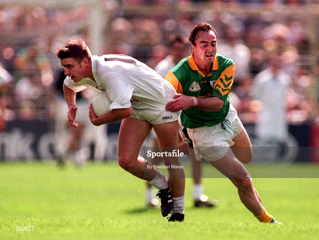 6 July 1997; Eddie McCormack of Kildare holds of the challenge of Colm Coyle of Meath during the Leinster GAA Senior Football Championship Semi-Final match between Kildare and Meath at Croke Park in Dublin. Photo by Brendan Moran/Sportsfile