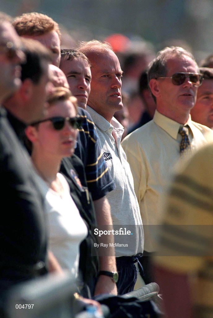 9 August 1998; Clare manager Ger Loughnane and suspended player Colin Lynch during the GAA Hurling All-Ireland Senior Championship Semi-Final match between Offaly and Clare at Croke Park in Dublin. Photo by Ray McManus/Sportsfile