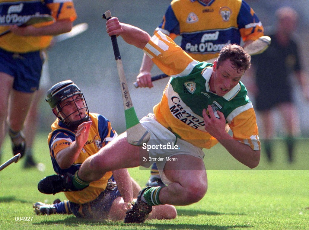 9 August 1998; John Ryan of Offaly in action against Sean McMahon of Clare during the GAA Hurling All-Ireland Senior Championship Semi-Final match between Offaly and Clare at Croke Park in Dublin. Photo by Brendan Moran/Sportsfile
