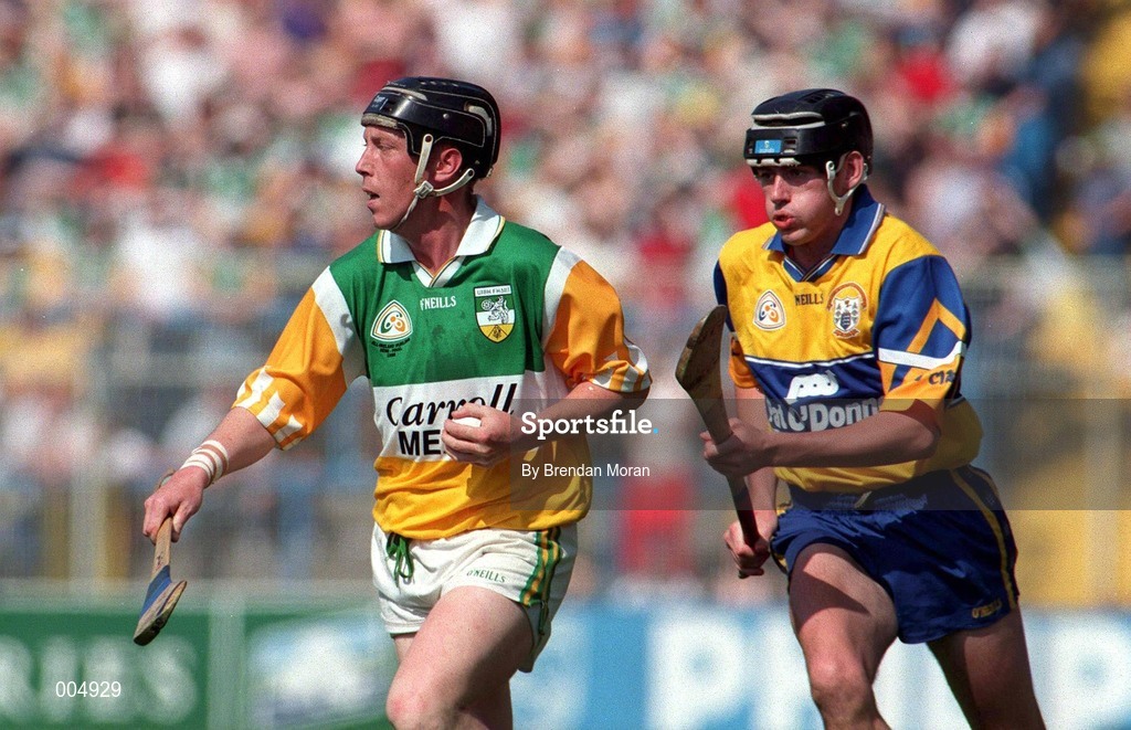 9 August 1998; John Troy of Offaly in action against Richard Woods of Clare during the GAA Hurling All-Ireland Senior Championship Semi-Final match between Offaly and Clare at Croke Park in Dublin. Photo by Brendan Moran/Sportsfile