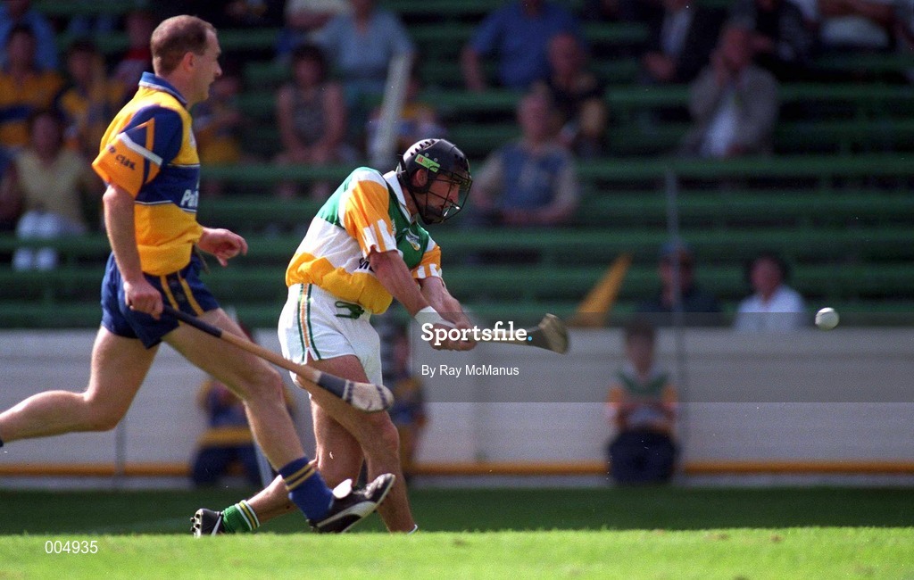 9 August 1998; Johnny Dooley of Offaly has a shot on goal during the GAA Hurling All-Ireland Senior Championship Semi-Final match between Offaly and Clare at Croke Park in Dublin. Photo by Ray McManus/SPORTSFILE