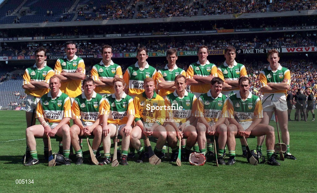 9 August 1998; The Offaly team prior to the GAA Hurling All-Ireland Senior Championship Semi-Final match between Offaly and Clare at Croke Park in Dublin. Photo by Ray McManus/Sportsfile