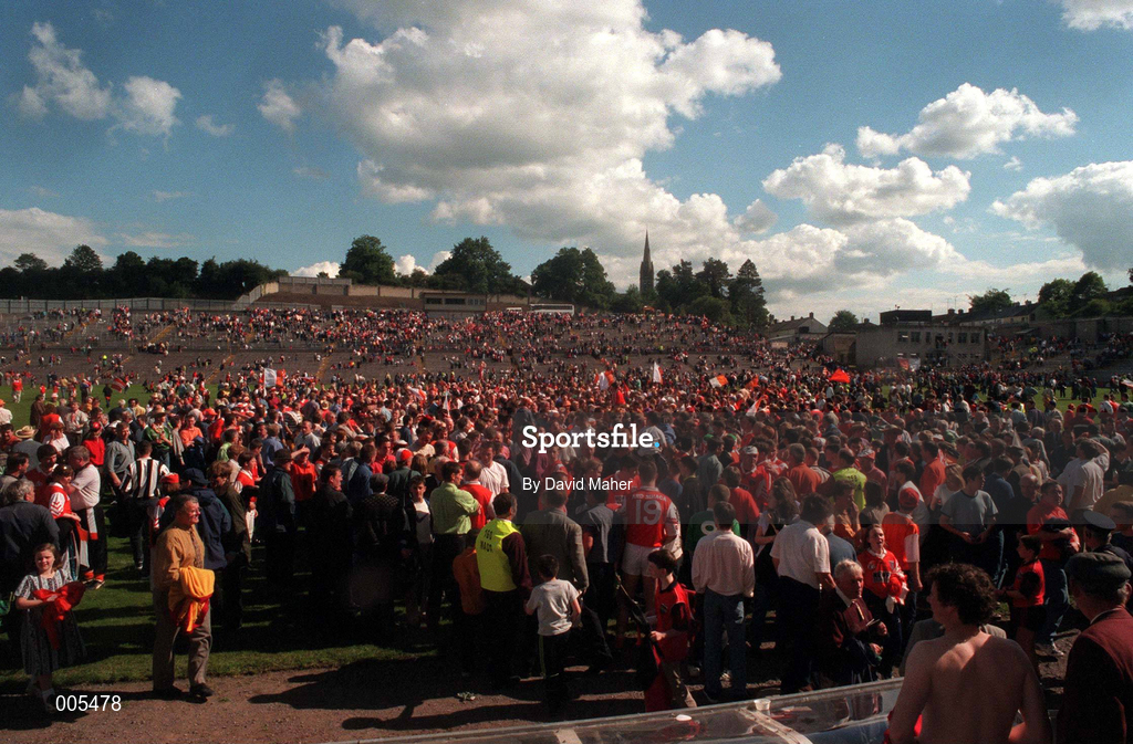14 June 1998; Armagh fans celebrate following the Ulster Senior Football Championship Quarter-Final match between Down and Armagh at St. Tiernach's Park, Clones. Photo by David Maher/Sportsfile