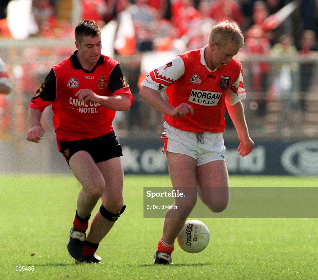 14 June 1998; Barry Duffy of Armagh in action against Sean Ward of Down during the Ulster Senior Football Championship Quarter-Final match between Down and Armagh at St. Tiernach's Park, Clones. Photo by David Maher/Sportsfile