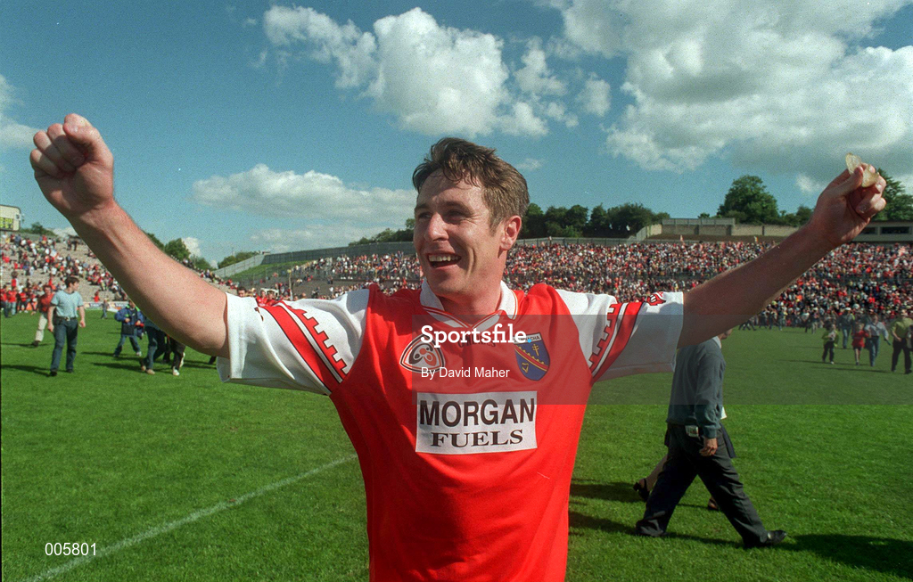 14 June 1998; Ger Houlihan of Armagh celebrates after the Ulster Senior Football Championship Quarter-Final match between Down and Armagh at St. Tiernach's Park, Clones. Photo by David Maher/Sportsfile