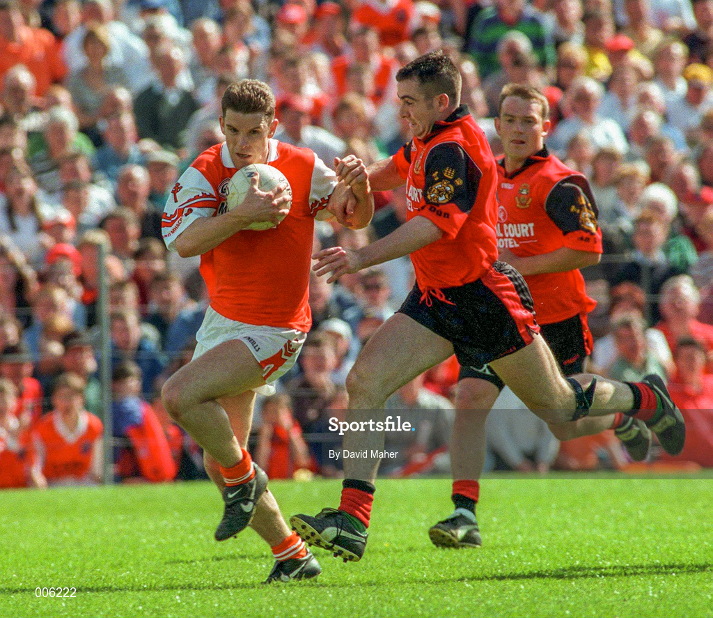 14 June 1998; Paul McGrane of Armagh in action against Sean Ward of Down during the Ulster Senior Football Championship Quarter-Final match between Down and Armagh at St. Tiernach's Park, Clones. Photo by David Maher/Sportsfile