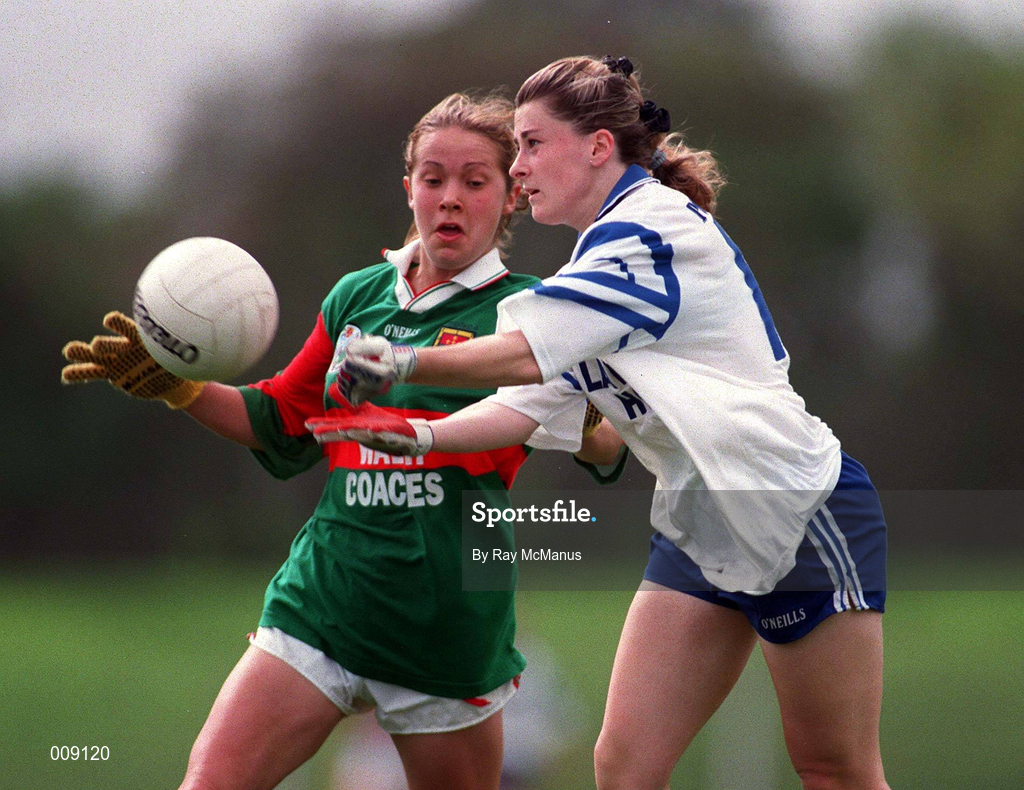 6 September 1998; Fiona Crotty of Waterford in against Niamh Lally of Mayo during the Bank of Ireland Ladies Football Championship Semi-Final match between Mayo and Waterford at Fraher Field in Dungarvan, Waterford. Photo by Ray McManus/Sportsfile