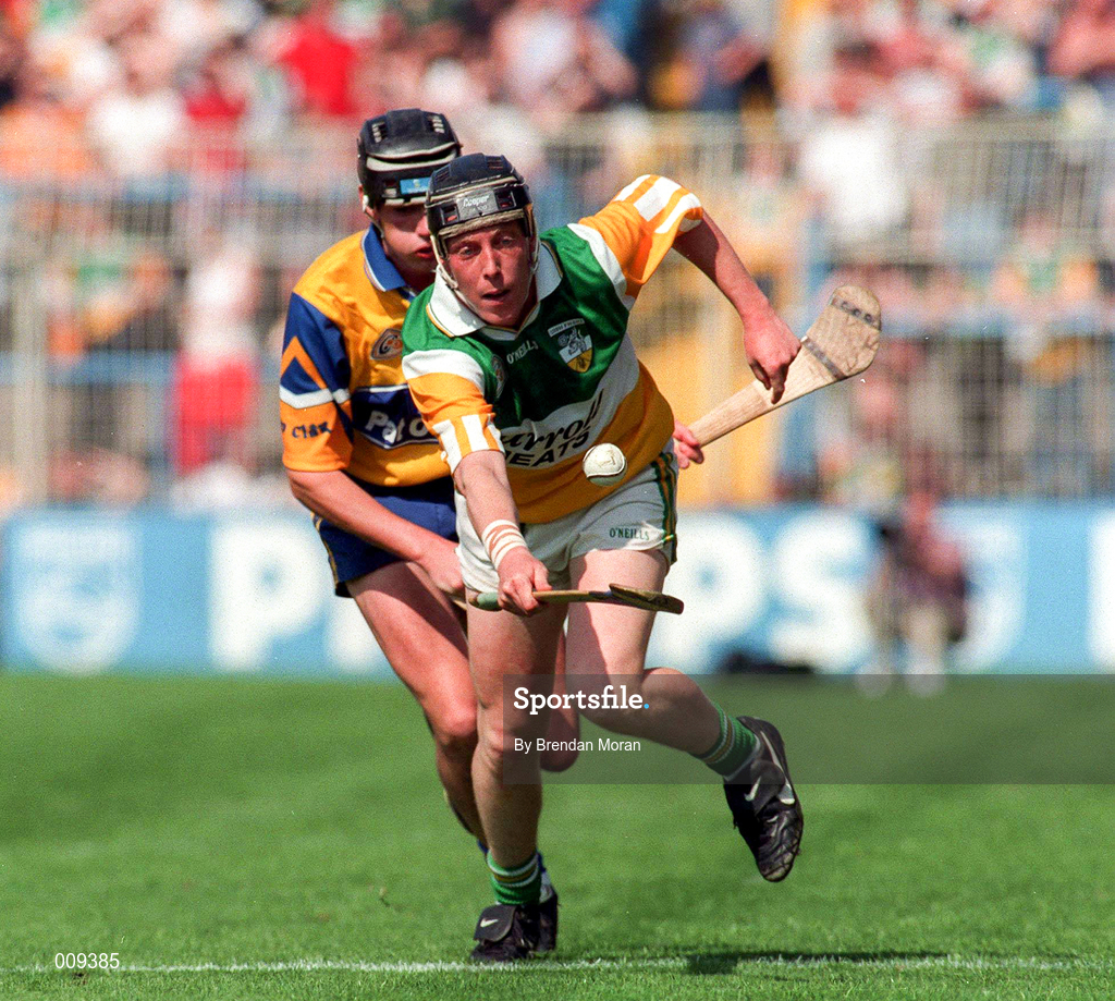 9 August 1998; John Troy of Offaly in action against Fergal Hegarty of Clare during the Guinness All-Ireland Senior Hurling Championship Semi-Final match between Clare and Offaly at Croke Park in Dublin. Photo by Brendan Moran/Sportsfile