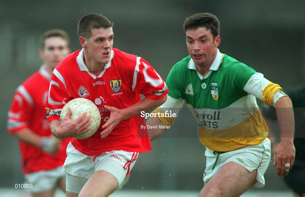 1 November 1998; Brendan O'Sullivan of Cork in action against Sean Grennan of Offaly during the Church & General National Football League match between Offaly and Cork at O'Connor Park in Tullamore, Offaly. Photo by David Maher/Sportsfile